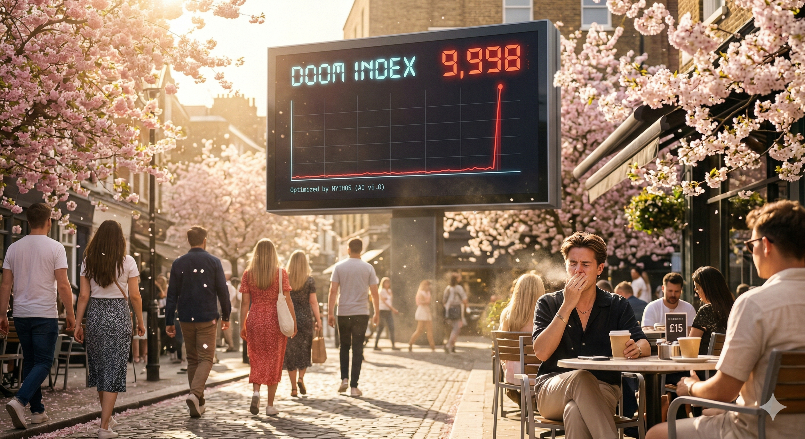 There is something deeply poetic about facing the pending Armageddon while the days are getting longer. It’s much harder to maintain a proper dystopian gloom when you’re being blinded by 8:00 PM sunshine. The apocalypse was supposed to be dark, metallic, and scored by Hans Zimmer. Instead, it’s vibrant green, smells like freshly cut grass, and involves me sneezing so hard I nearly trigger a zero-day exploit in my own spinal column.