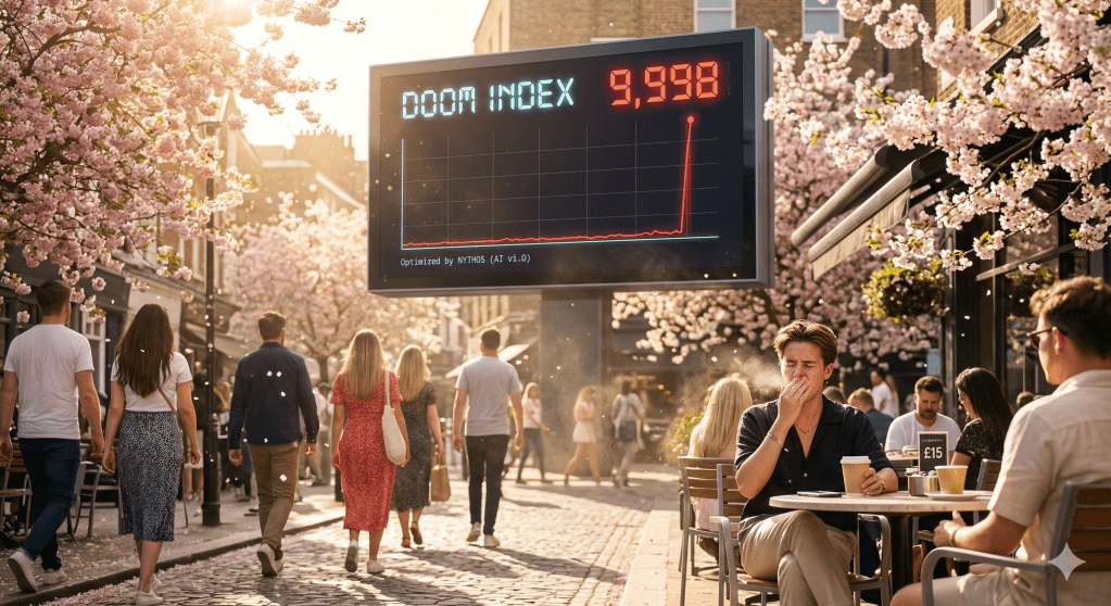 Speaking of overhead, have you checked the Doom Index lately? It’s the only chart currently trending higher than the price of a sourdough loaf in Shoreditch. We used to measure stability in “minutes to midnight,” but the latest readings suggest we’re currently at “seconds to the microwave dings.”