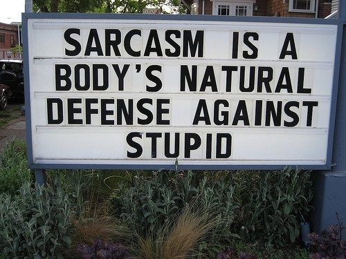 . . . natural defense against stupid Posted on July 15, 2010 Posted in quotes, typographyTagged sarcasm is a body's natural defense against stupid1 Comment